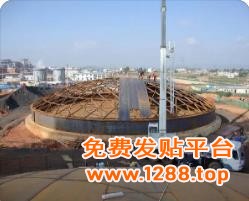 9)当整个气柜柜顶系统上升到指定的安装位置时,可以进行柜顶的安装工作,柜顶安装完哔可将挂钩装置与柜顶脱离,使挂钩装置随同活塞系统整体回落。