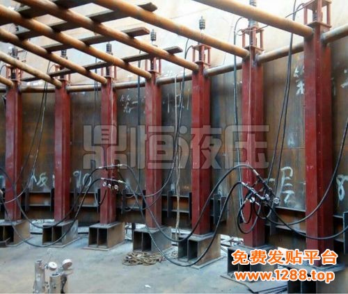 3)液压顶升装置体积小、自重轻、承载过载能力大,特别适宜于在狭小空间或室内进行大吨位构件提升安装。